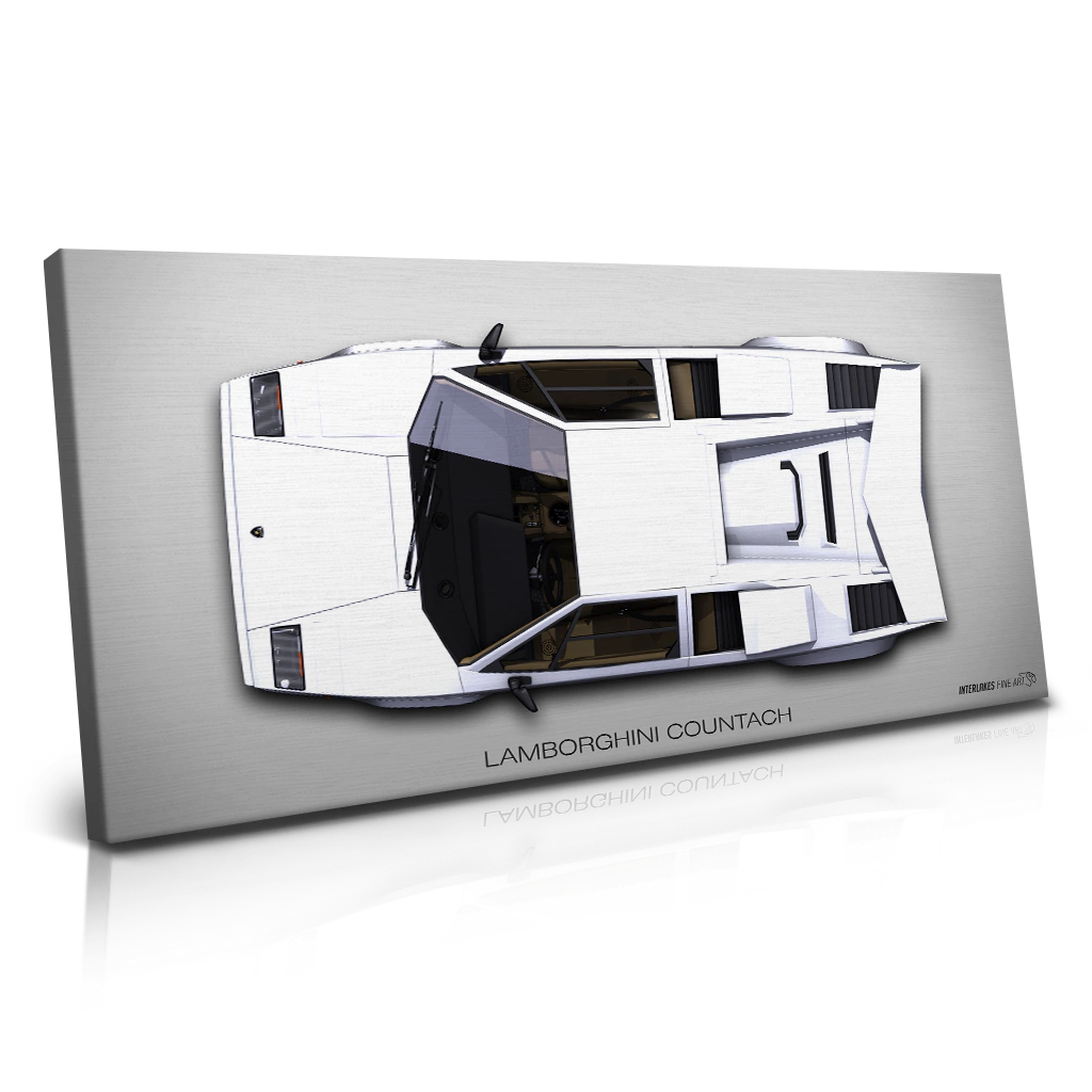Assim como todos nossos produtos, sempre pensamos em extrair a melhor qualidade possível junto com a paixão automotiva. E com o FINE ART INTERLAKES demos um passo além! Essa arte no estilo Top View, mostrando o carro numa vista por cima (aérea) foi feita especialmente para celebrar o LAMBORGHINI COUNTACH | TOP VIEW e sua história de extrema relevância para os gearheads.
