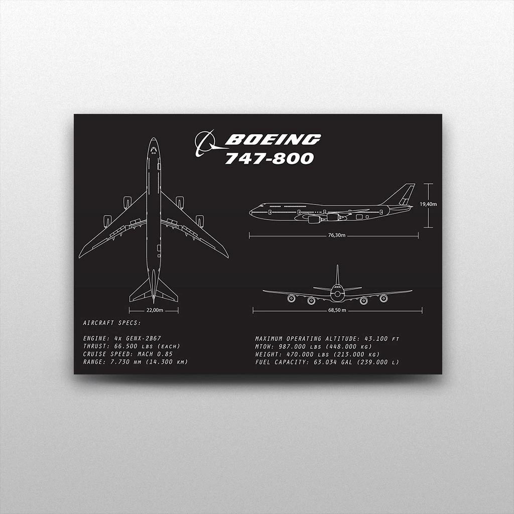 Traga o BOEING 747-800 para fazer parte da decoração da sua casa, seja ele uma parte da sua história, esteja no hangar ou ainda exista apenas nos seus sonhos. Eternize a máquina que faz seu coração bater mais forte com um quadro decorativo exclusivo da Interlakes. Este quadro no ESTILO PRETO E BRANCO apresenta uma blueprint detalhada com as visões lateral, frontal e traseira (front view, side view, rear view), permitindo que você transforme seu lar em um verdadeiro templo para suas paixões aéreas. Adquira agora esta impressionante arte do BOEING 747-800 e eleve o estilo do seu ambiente.