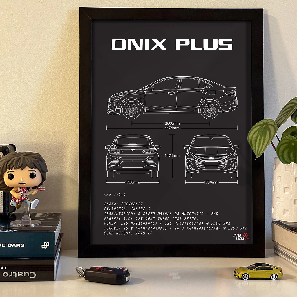 Traga o CHEVROLET ONIX PLUS LT 2020 para fazer parte da decoração da sua casa, seja ele uma parte da sua história, esteja na garagem ou ainda exista apenas nos seus sonhos. Eternize a máquina que faz seu coração bater mais forte com um quadro decorativo exclusivo da Interlakes. Este quadro no ESTILO PRETO E BRANCO apresenta uma blueprint/desenho técnico detalhado com as visões lateral, frontal e traseira (front view, side view, rear view) com ficha técnica das especificações do veículo, permitindo que você transforme seu lar em um verdadeiro templo para suas paixões automotivas. Adquira agora esta impressionante arte do CHEVROLET ONIX PLUS LT 2020 e eleve o estilo do seu ambiente.