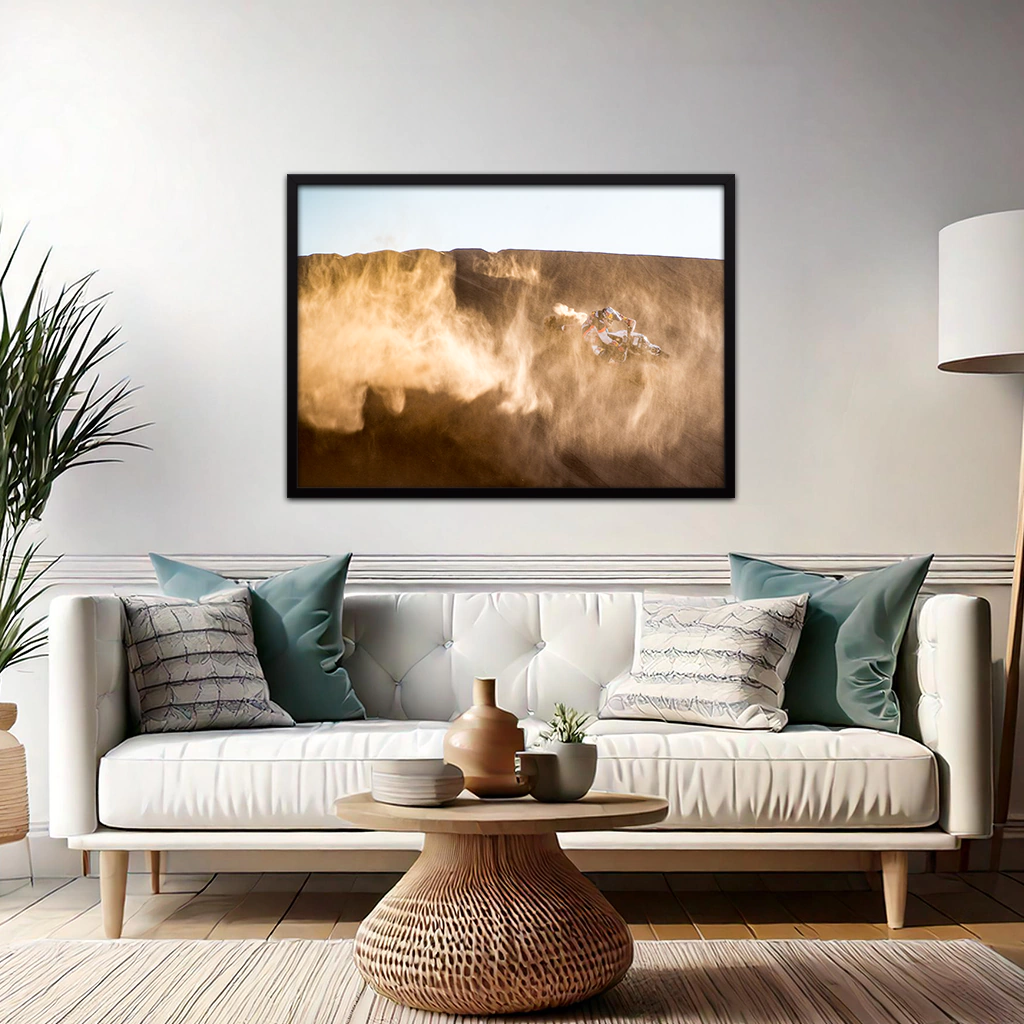 Cada fotografia capturada por José Mario Dias carrega uma profundidade emocional muito além do que se possa imaginar. Tome como exemplo esta imagem: encontrava-se a metros de distância de um caminhão do Rally-Dakar, esculpindo as dunas do deserto. Para garantir uma qualidade excepcional, Zé Mario não hesita em se expor a situações de risco, tudo em busca da fotografia perfeita. Assim, você pode levar para sua casa não apenas uma imagem, mas um fragmento da história automobilística, imbuído de emoção e adrenalina.