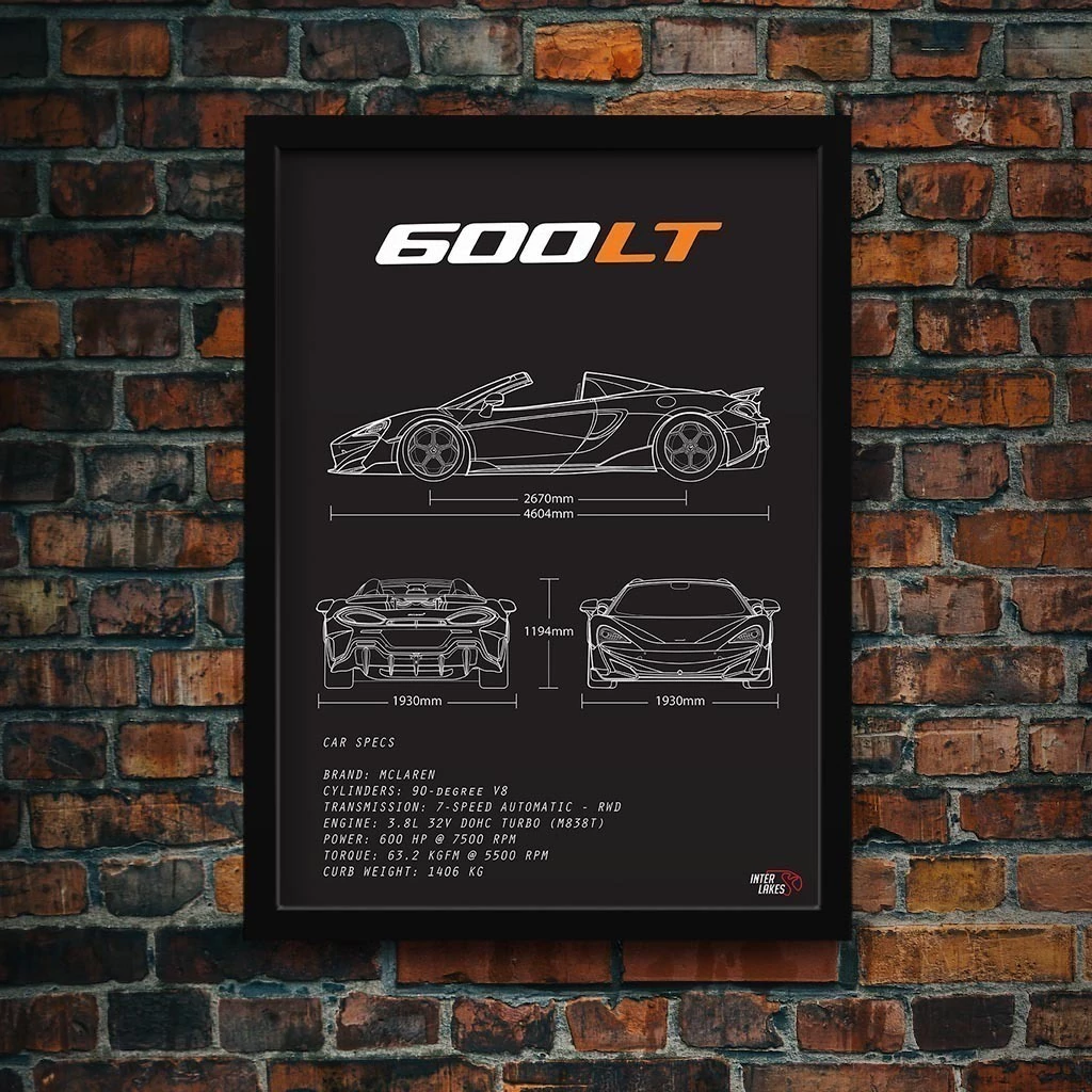Traga o MCLAREN 600LT SPIDER 2020 para fazer parte da decoração da sua casa, seja ele uma parte da sua história, esteja na garagem ou ainda exista apenas nos seus sonhos. Eternize a máquina que faz seu coração bater mais forte com um quadro decorativo exclusivo da Interlakes. Este quadro no ESTILO PRETO E BRANCO apresenta uma blueprint/desenho técnico detalhado com as visões lateral, frontal e traseira (front view, side view, rear view) com ficha técnica das especificações do veículo, permitindo que você transforme seu lar em um verdadeiro templo para suas paixões automotivas. Adquira agora esta impressionante arte do MCLAREN 600LT SPIDER 2020 e eleve o estilo do seu ambiente.