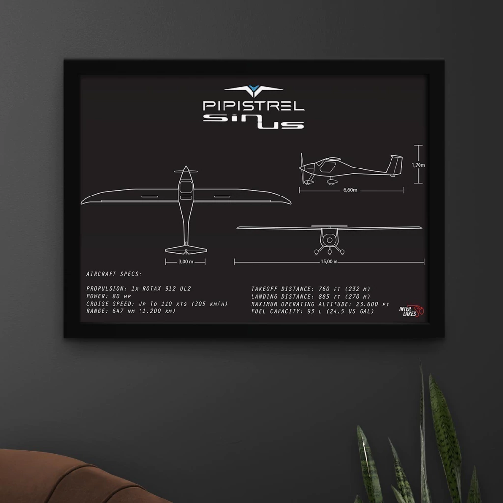 Traga o PIPISTREL SINUS para fazer parte da decoração da sua casa, seja ele uma parte da sua história, esteja no hangar ou ainda exista apenas nos seus sonhos. Eternize a máquina que faz seu coração bater mais forte com um quadro decorativo exclusivo da Interlakes. Este quadro no ESTILO PRETO E BRANCO apresenta uma blueprint detalhada com as visões lateral, frontal e traseira (front view, side view, rear view), permitindo que você transforme seu lar em um verdadeiro templo para suas paixões aéreas. Adquira agora esta impressionante arte do PIPISTREL SINUS e eleve o estilo do seu ambiente.