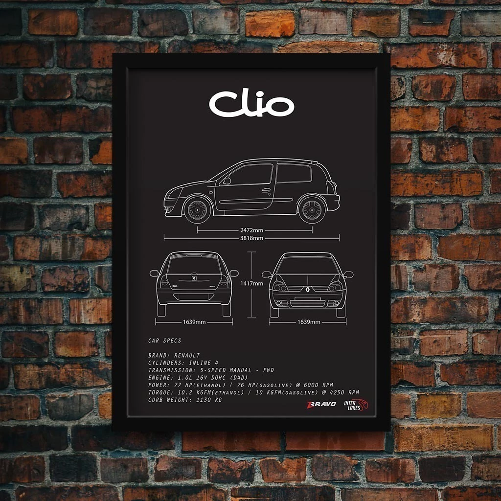 Traga o RENAULT CLIO MK2 2P CAMPUS 2010 para fazer parte da decoração da sua casa, seja ele uma parte da sua história, esteja na garagem ou ainda exista apenas nos seus sonhos. Eternize a máquina que faz seu coração bater mais forte com um quadro decorativo exclusivo da Interlakes. Este quadro no ESTILO PRETO E BRANCO apresenta uma blueprint/desenho técnico detalhado com as visões lateral, frontal e traseira (front view, side view, rear view) com ficha técnica das especificações do veículo, permitindo que você transforme seu lar em um verdadeiro templo para suas paixões automotivas. Adquira agora esta impressionante arte do RENAULT CLIO MK2 2P CAMPUS 2010 e eleve o estilo do seu ambiente.