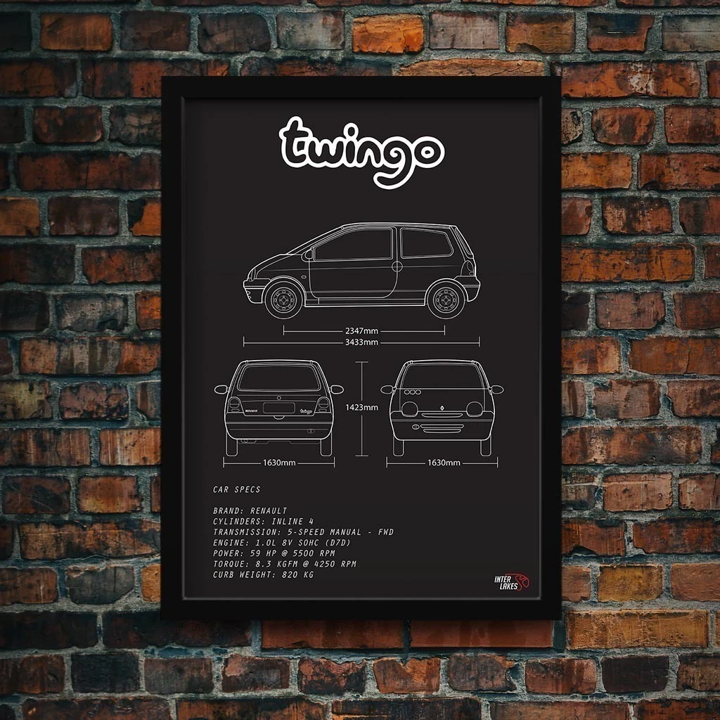 Traga o RENAULT TWINGO 1.0 8V 2000 para fazer parte da decoração da sua casa, seja ele uma parte da sua história, esteja na garagem ou ainda exista apenas nos seus sonhos. Eternize a máquina que faz seu coração bater mais forte com um quadro decorativo exclusivo da Interlakes. Este quadro no ESTILO PRETO E BRANCO apresenta uma blueprint/desenho técnico detalhado com as visões lateral, frontal e traseira (front view, side view, rear view) com ficha técnica das especificações do veículo, permitindo que você transforme seu lar em um verdadeiro templo para suas paixões automotivas. Adquira agora esta impressionante arte do RENAULT TWINGO 1.0 8V 2000 e eleve o estilo do seu ambiente.
