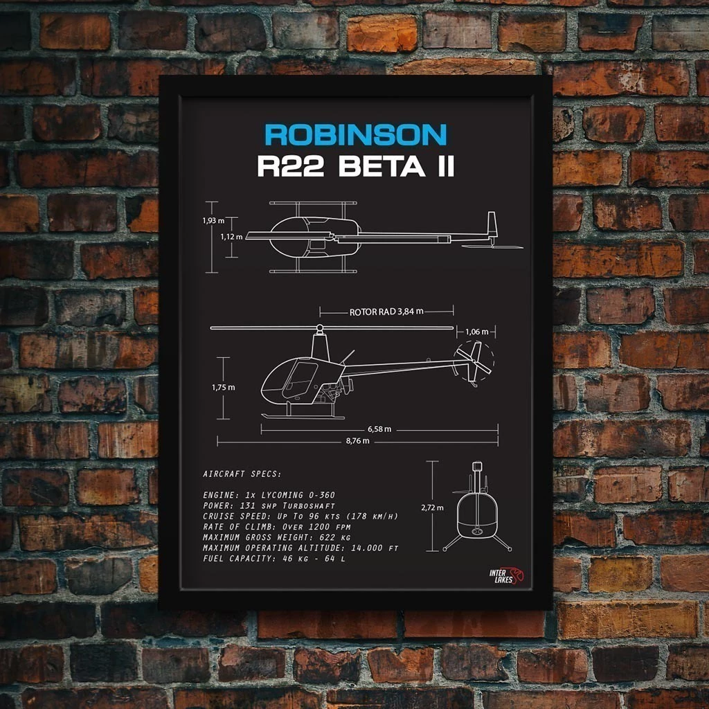 Traga o ROBINSON R22 BETA II para fazer parte da decoração da sua casa, seja ele uma parte da sua história, esteja no hangar ou ainda exista apenas nos seus sonhos. Eternize a máquina que faz seu coração bater mais forte com um quadro decorativo exclusivo da Interlakes. Este quadro no ESTILO PRETO E BRANCO apresenta uma blueprint detalhada com as visões lateral, frontal e traseira (front view, side view, rear view), permitindo que você transforme seu lar em um verdadeiro templo para suas paixões aéreas. Adquira agora esta impressionante arte do ROBINSON R22 BETA II e eleve o estilo do seu ambiente.