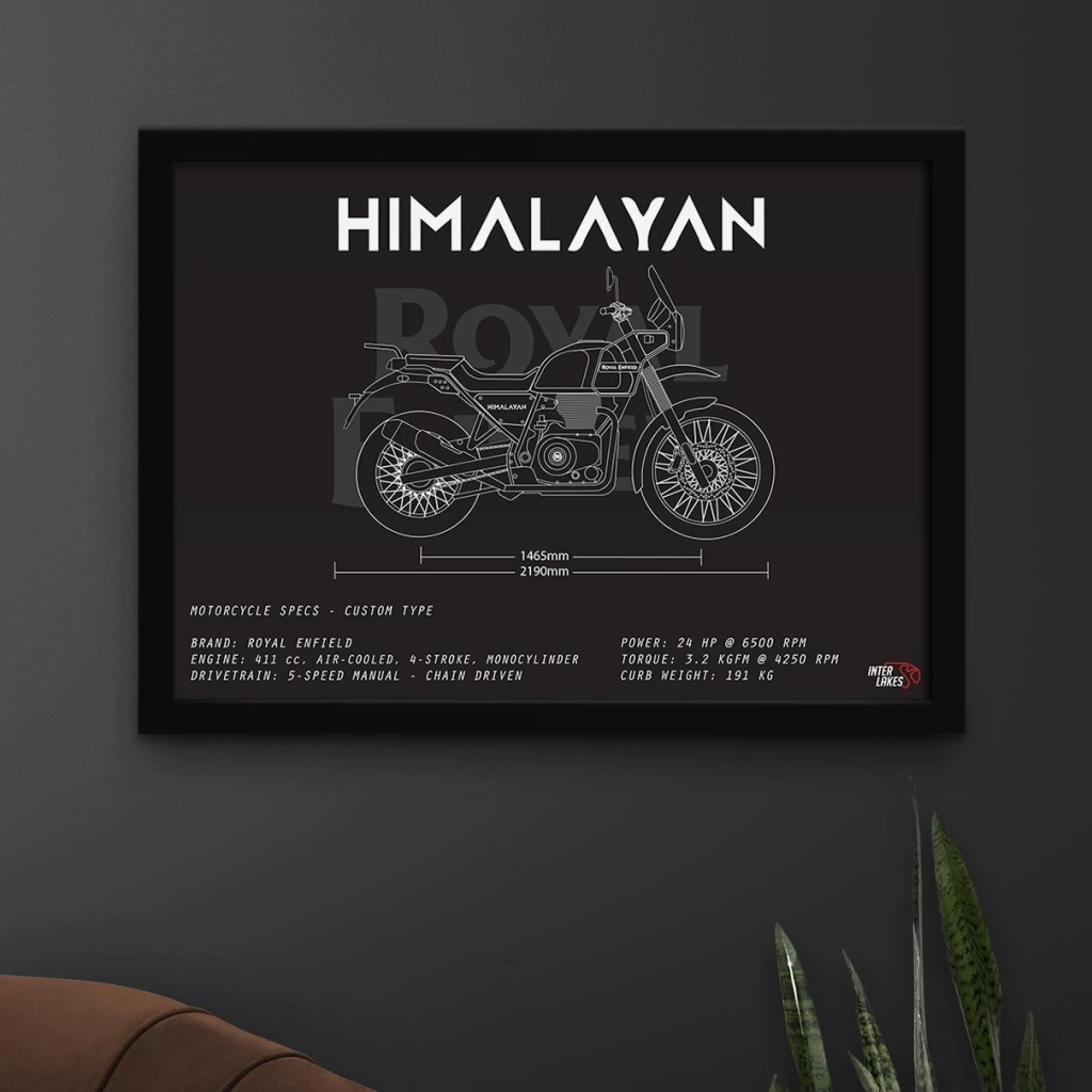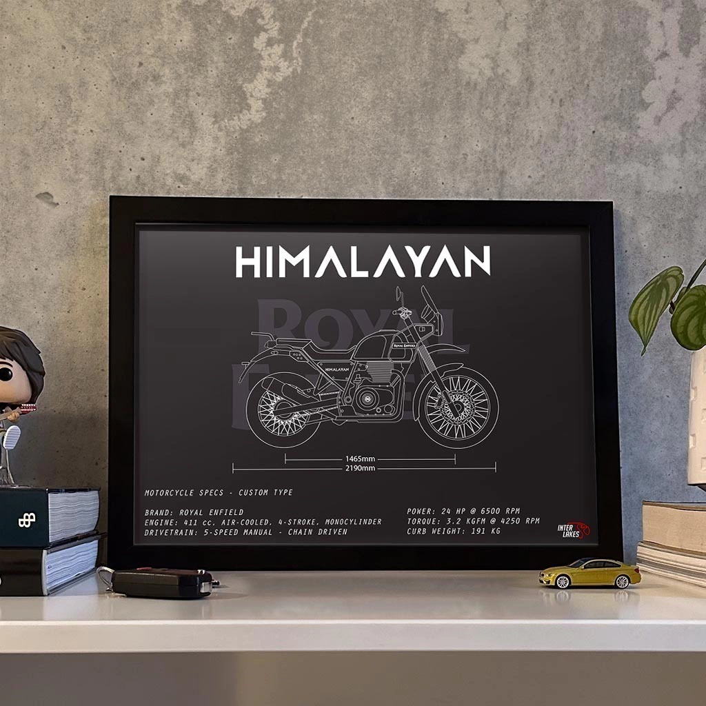 Traga o ROYAL ENFIELD HIMALAYAN 2020 para fazer parte da decoração da sua casa, seja ele uma parte da sua história, esteja na sua garagem ou ainda exista apenas nos seus sonhos. Eternize a máquina que faz seu coração bater mais forte com um quadro decorativo exclusivo da Interlakes. Este quadro no ESTILO PRETO E BRANCO apresenta uma blueprint/desenho técnico detalhado com as visões lateral, frontal e traseira (front view, side view, rear view) com ficha técnica das especificações do veículo, permitindo que você transforme seu lar em um verdadeiro templo para suas paixões em duas rodas. Adquira agora esta impressionante arte do ROYAL ENFIELD HIMALAYAN 2020 e eleve o estilo do seu ambiente.