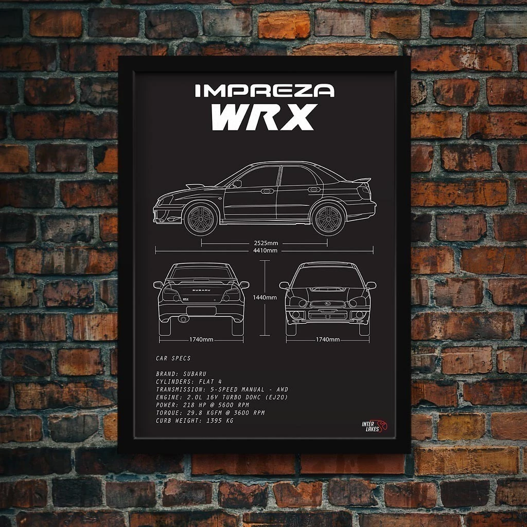 Traga o SUBARU IMPREZA WRX BLOB SEDAN para fazer parte da decoração da sua casa, seja ele uma parte da sua história, esteja na garagem ou ainda exista apenas nos seus sonhos. Eternize a máquina que faz seu coração bater mais forte com um quadro decorativo exclusivo da Interlakes. Este quadro no ESTILO PRETO E BRANCO apresenta uma blueprint/desenho técnico detalhado com as visões lateral, frontal e traseira (front view, side view, rear view) com ficha técnica das especificações do veículo, permitindo que você transforme seu lar em um verdadeiro templo para suas paixões automotivas. Adquira agora esta impressionante arte do SUBARU IMPREZA WRX BLOB SEDAN e eleve o estilo do seu ambiente.