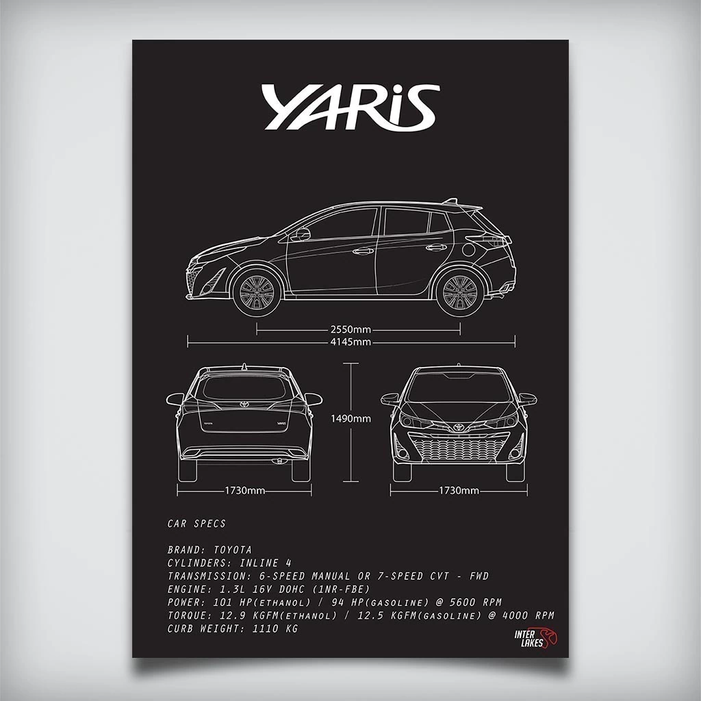 Traga o TOYOTA YARIS HATCH 1.3 2020 para fazer parte da decoração da sua casa, seja ele uma parte da sua história, esteja na garagem ou ainda exista apenas nos seus sonhos. Eternize a máquina que faz seu coração bater mais forte com um quadro decorativo exclusivo da Interlakes. Este quadro no ESTILO PRETO E BRANCO apresenta uma blueprint/desenho técnico detalhado com as visões lateral, frontal e traseira (front view, side view, rear view) com ficha técnica das especificações do veículo, permitindo que você transforme seu lar em um verdadeiro templo para suas paixões automotivas. Adquira agora esta impressionante arte do TOYOTA YARIS HATCH 1.3 2020 e eleve o estilo do seu ambiente.