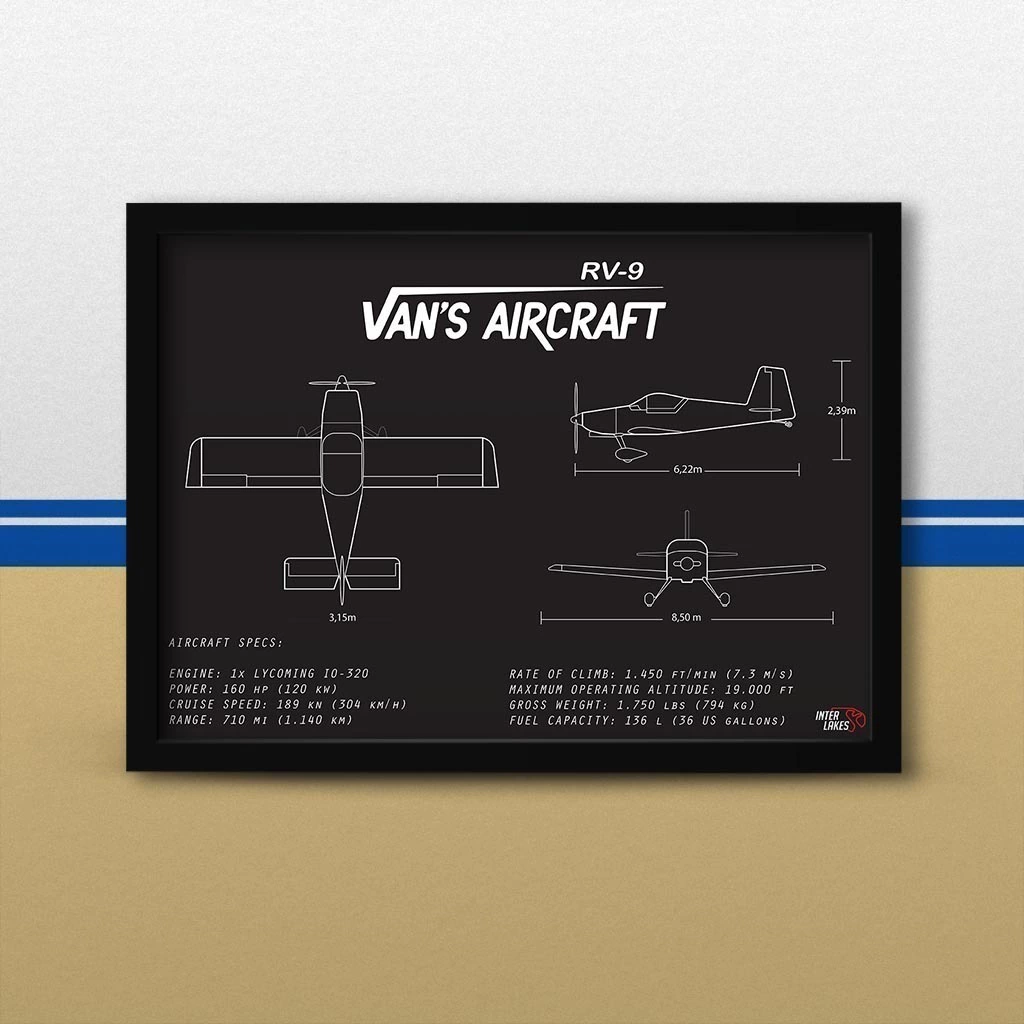 Traga o VANS RV-9 para fazer parte da decoração da sua casa, seja ele uma parte da sua história, esteja no hangar ou ainda exista apenas nos seus sonhos. Eternize a máquina que faz seu coração bater mais forte com um quadro decorativo exclusivo da Interlakes. Este quadro no ESTILO PRETO E BRANCO apresenta uma blueprint detalhada com as visões lateral, frontal e traseira (front view, side view, rear view), permitindo que você transforme seu lar em um verdadeiro templo para suas paixões aéreas. Adquira agora esta impressionante arte do VANS RV-9 e eleve o estilo do seu ambiente.