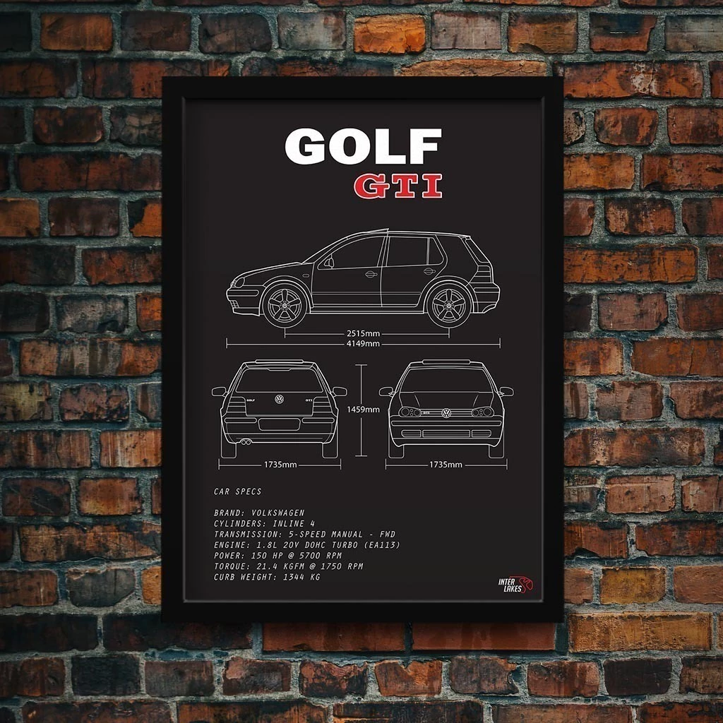 Traga o VOLKSWAGEN GOLF GTI 4P 150CV MK4 2002 para fazer parte da decoração da sua casa, seja ele uma parte da sua história, esteja na garagem ou ainda exista apenas nos seus sonhos. Eternize a máquina que faz seu coração bater mais forte com um quadro decorativo exclusivo da Interlakes. Este quadro no ESTILO PRETO E BRANCO apresenta uma blueprint/desenho técnico detalhado com as visões lateral, frontal e traseira (front view, side view, rear view) com ficha técnica das especificações do veículo, permitindo que você transforme seu lar em um verdadeiro templo para suas paixões automotivas. Adquira agora esta impressionante arte do VOLKSWAGEN GOLF GTI 4P 150CV MK4 2002 e eleve o estilo do seu ambiente.