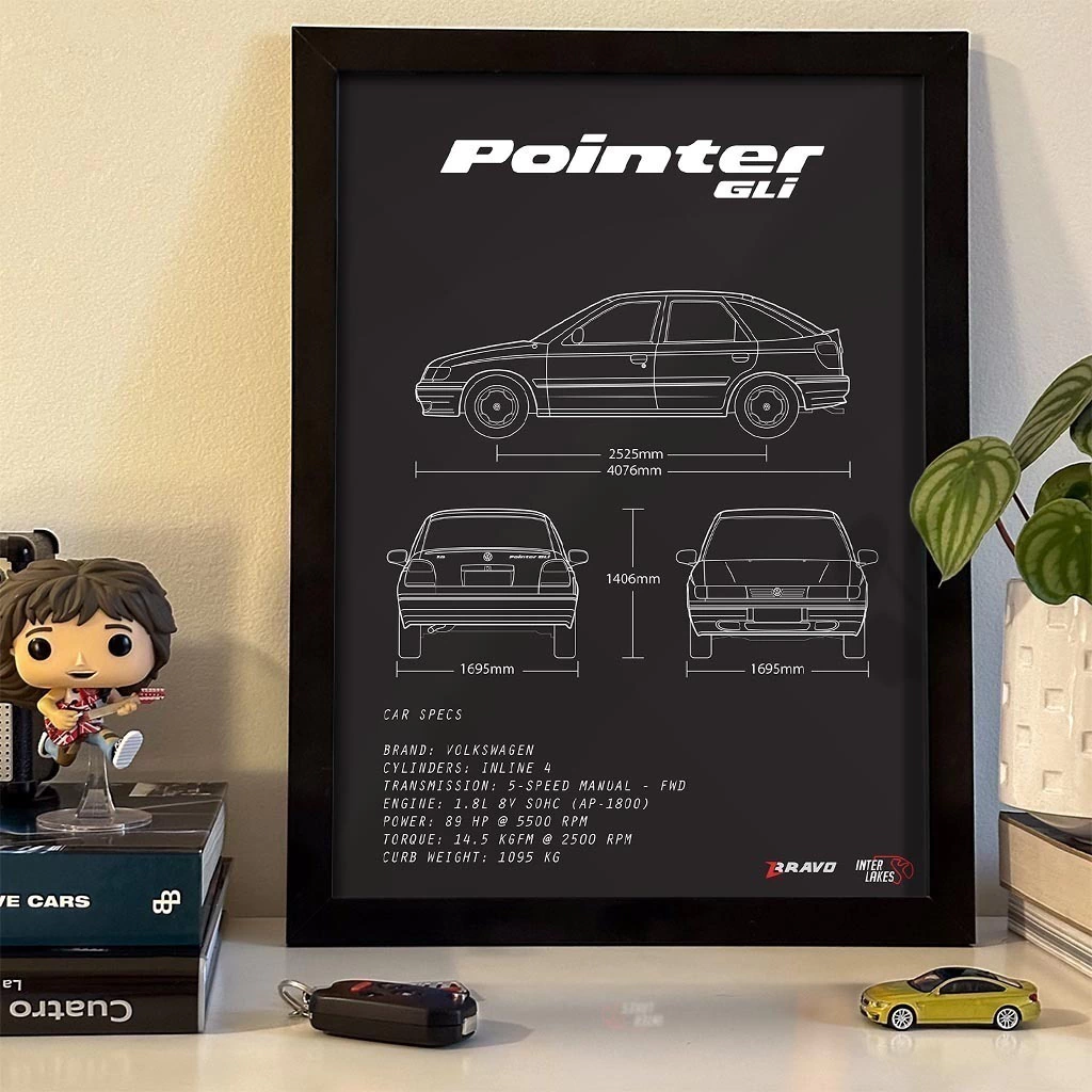 Traga o VOLKSWAGEN POINTER 1.8 GLI 1995 para fazer parte da decoração da sua casa, seja ele uma parte da sua história, esteja na garagem ou ainda exista apenas nos seus sonhos. Eternize a máquina que faz seu coração bater mais forte com um quadro decorativo exclusivo da Interlakes. Este quadro no ESTILO PRETO E BRANCO apresenta uma blueprint/desenho técnico detalhado com as visões lateral, frontal e traseira (front view, side view, rear view) com ficha técnica das especificações do veículo, permitindo que você transforme seu lar em um verdadeiro templo para suas paixões automotivas. Adquira agora esta impressionante arte do VOLKSWAGEN POINTER 1.8 GLI 1995 e eleve o estilo do seu ambiente.