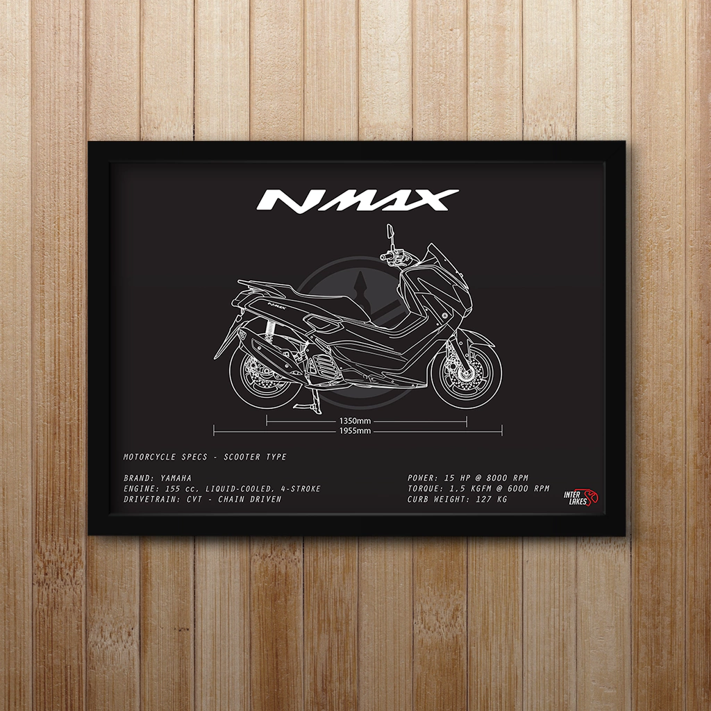 Traga o YAMAHA NMAX 160 ABS 2020 para fazer parte da decoração da sua casa, seja ele uma parte da sua história, esteja na sua garagem ou ainda exista apenas nos seus sonhos. Eternize a máquina que faz seu coração bater mais forte com um quadro decorativo exclusivo da Interlakes. Este quadro no ESTILO PRETO E BRANCO apresenta uma blueprint/desenho técnico detalhado com as visões lateral, frontal e traseira (front view, side view, rear view) com ficha técnica das especificações do veículo, permitindo que você transforme seu lar em um verdadeiro templo para suas paixões em duas rodas. Adquira agora esta impressionante arte do YAMAHA NMAX 160 ABS 2020 e eleve o estilo do seu ambiente.